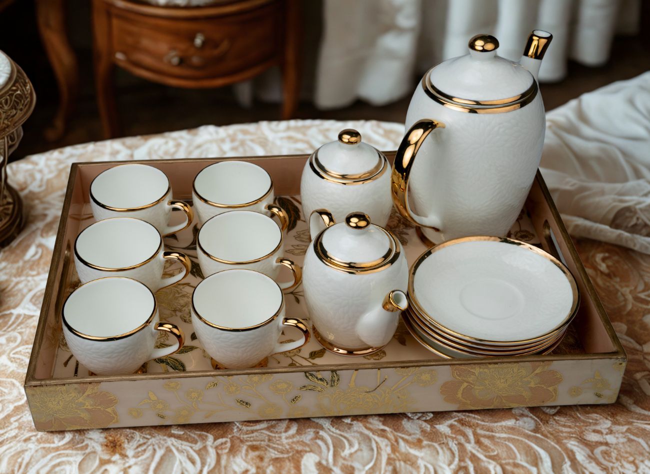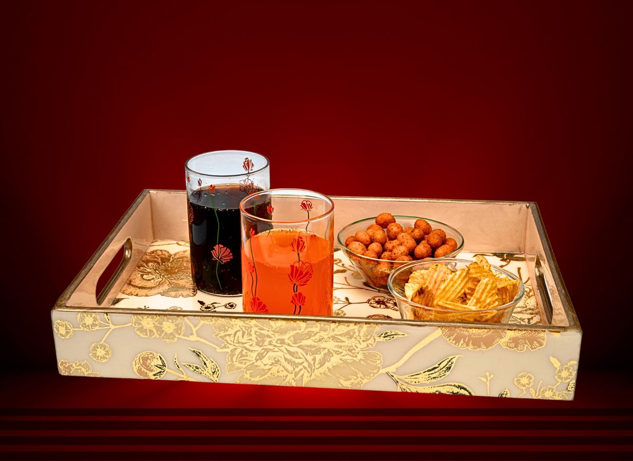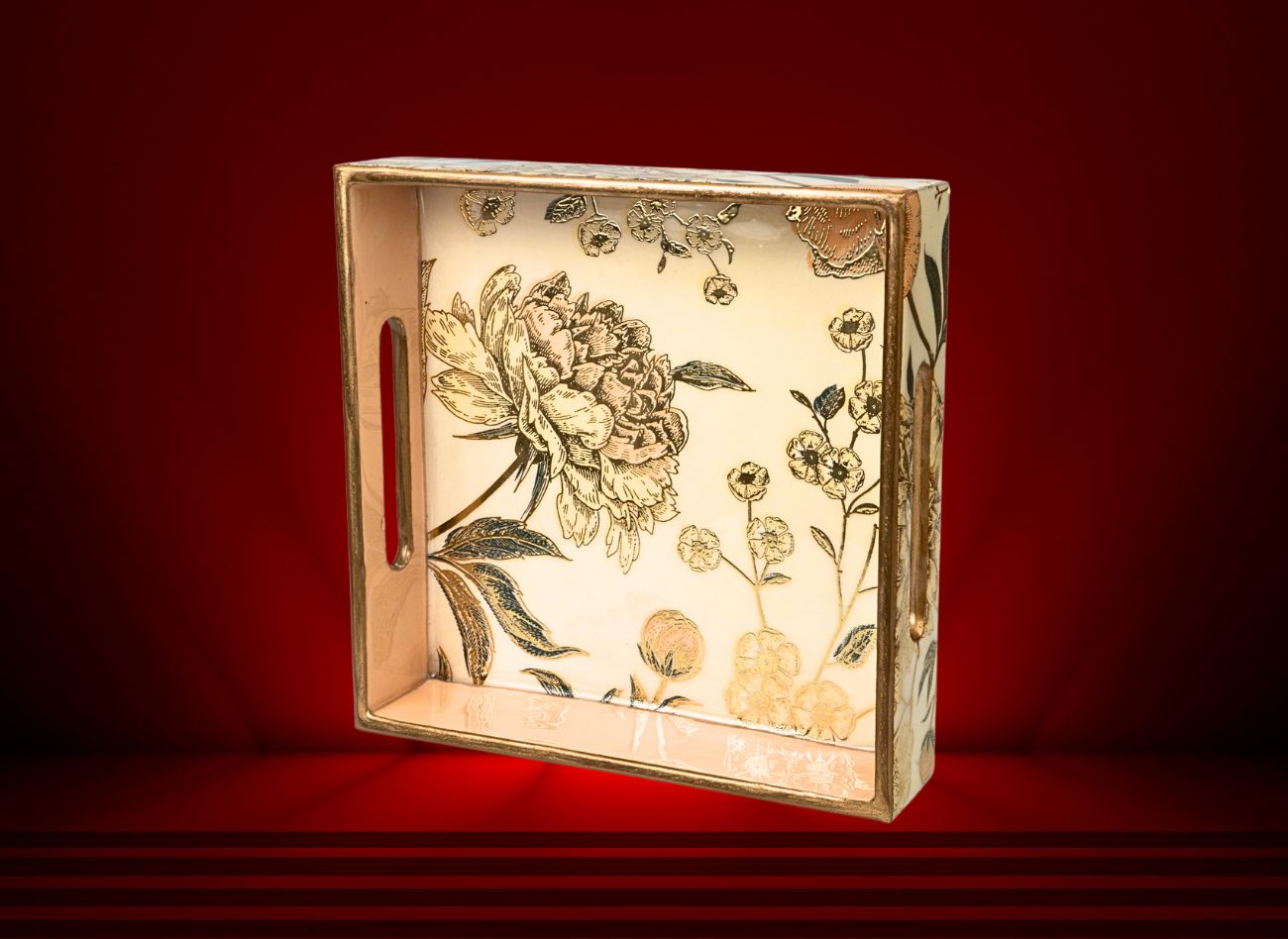 A harmonious blend of traditional craftsmanship and modern elegance. With delicate floral motifs in soft gold, beige, and earthy tones, each piece is hand-finished to perfection, making it an ideal choice for home décor, gifting, or corporate use. The neutral ivory base makes it a versatile accent for any interior theme, while the premium finish ensures lasting beauty.