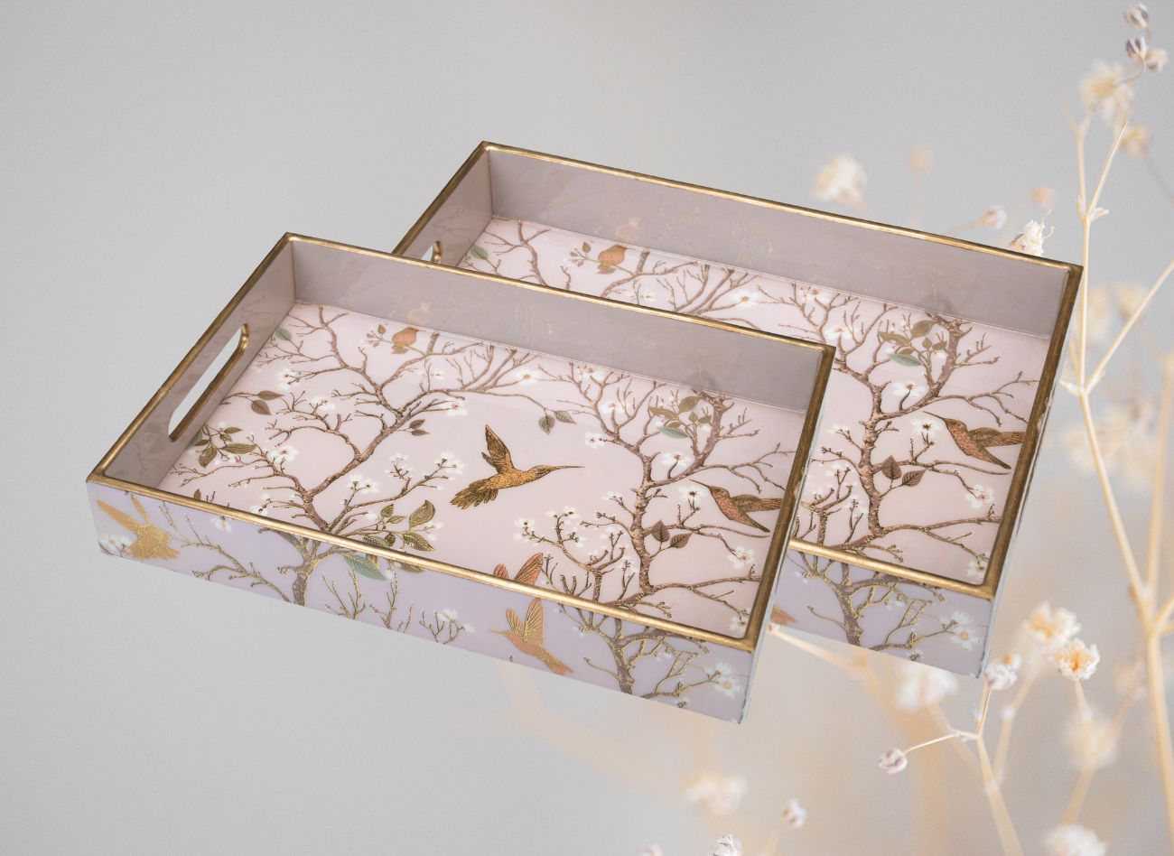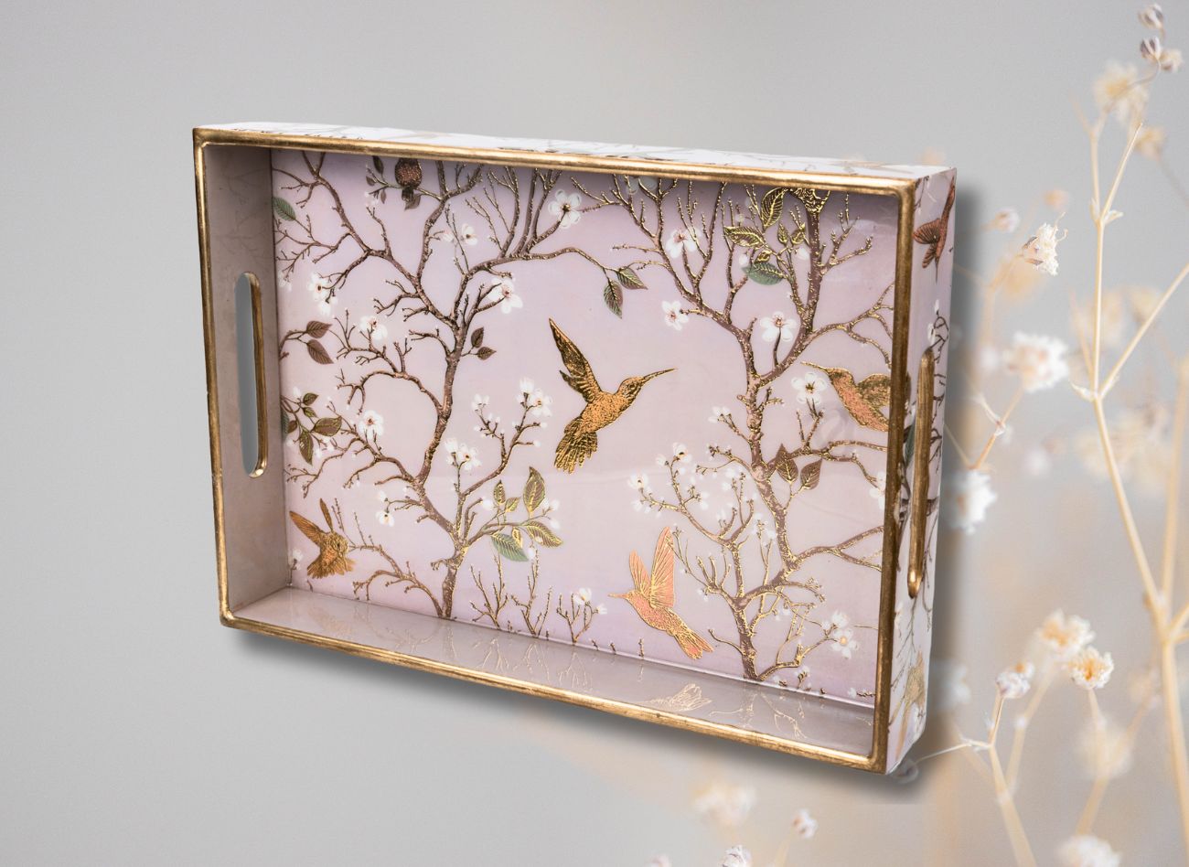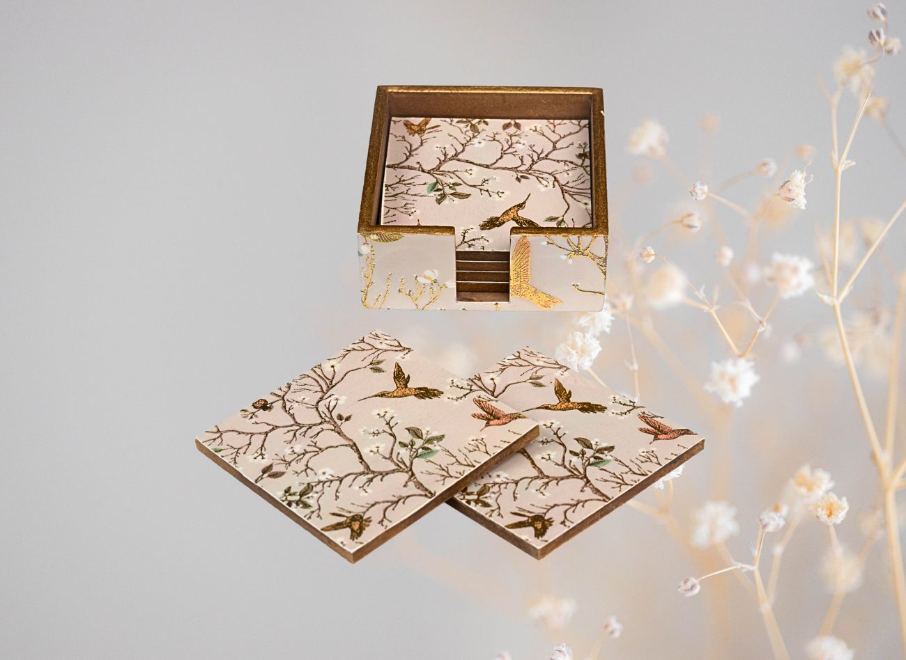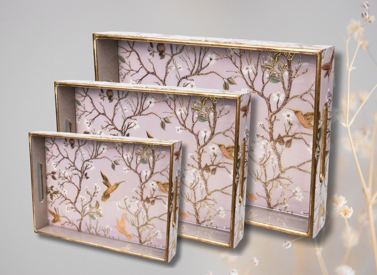 Embrace a soft, feminine charm with the Pink Wing Collection from Daily Talk – a beautiful ensemble of handcrafted utility décor that brings art into your everyday life. Inspired by delicate floral vines and graceful winged patterns in shades of pink and gold, this collection is perfect for those who love elegance with purpose. Crafted from durable engineered wood and finished with detailed foil art under a protective epoxy coating, each piece – from trays to coasters to holders – is made to be as functional as it is beautiful. Whether you’re serving guests or organising your table, Pink Wing adds sophistication to every touchpoint of your home.
