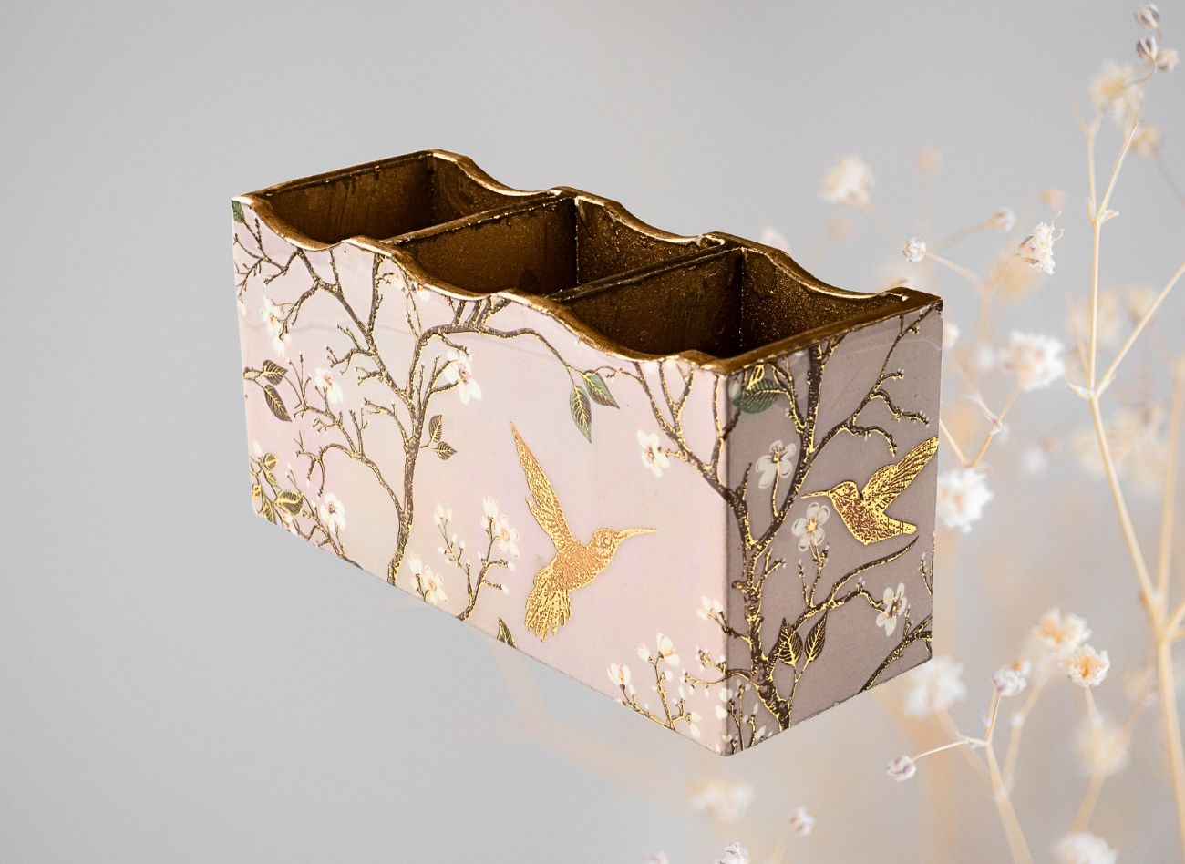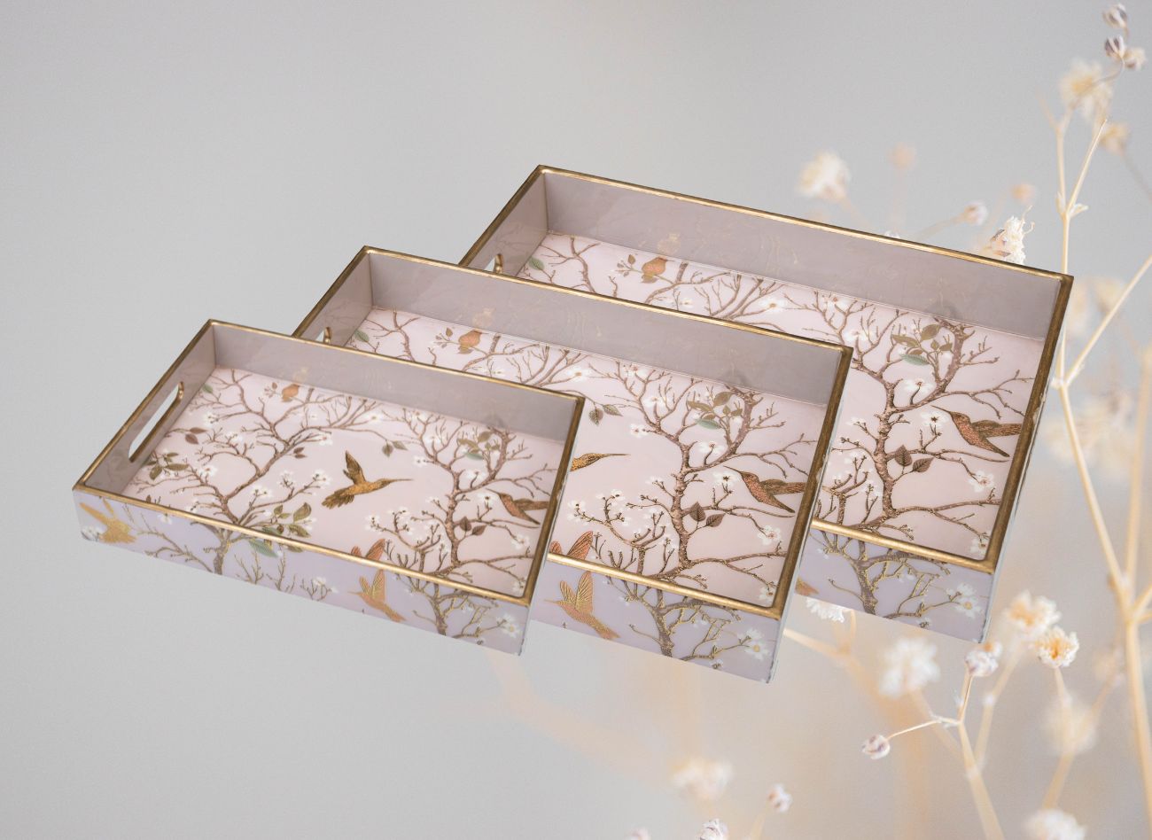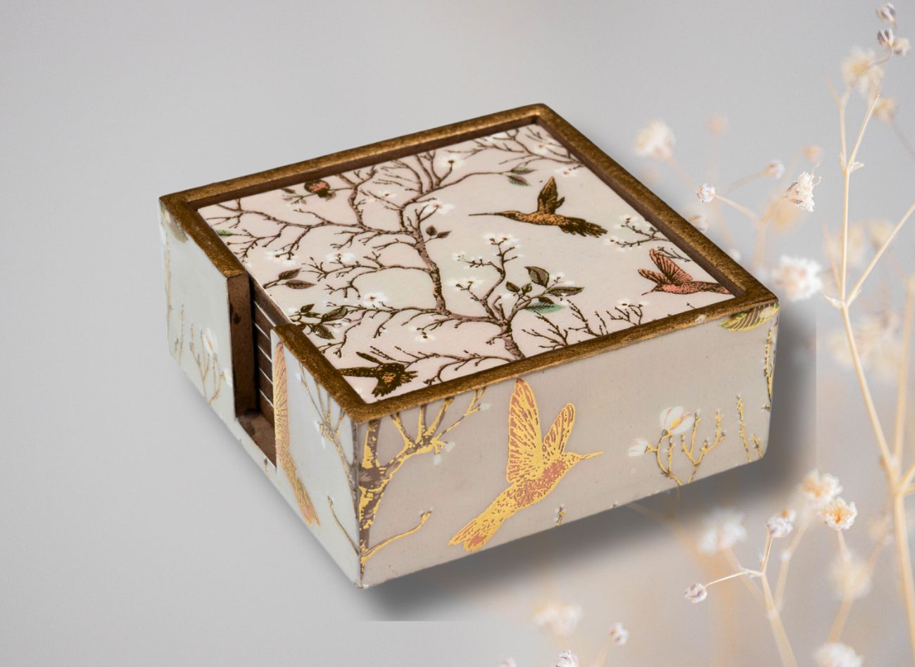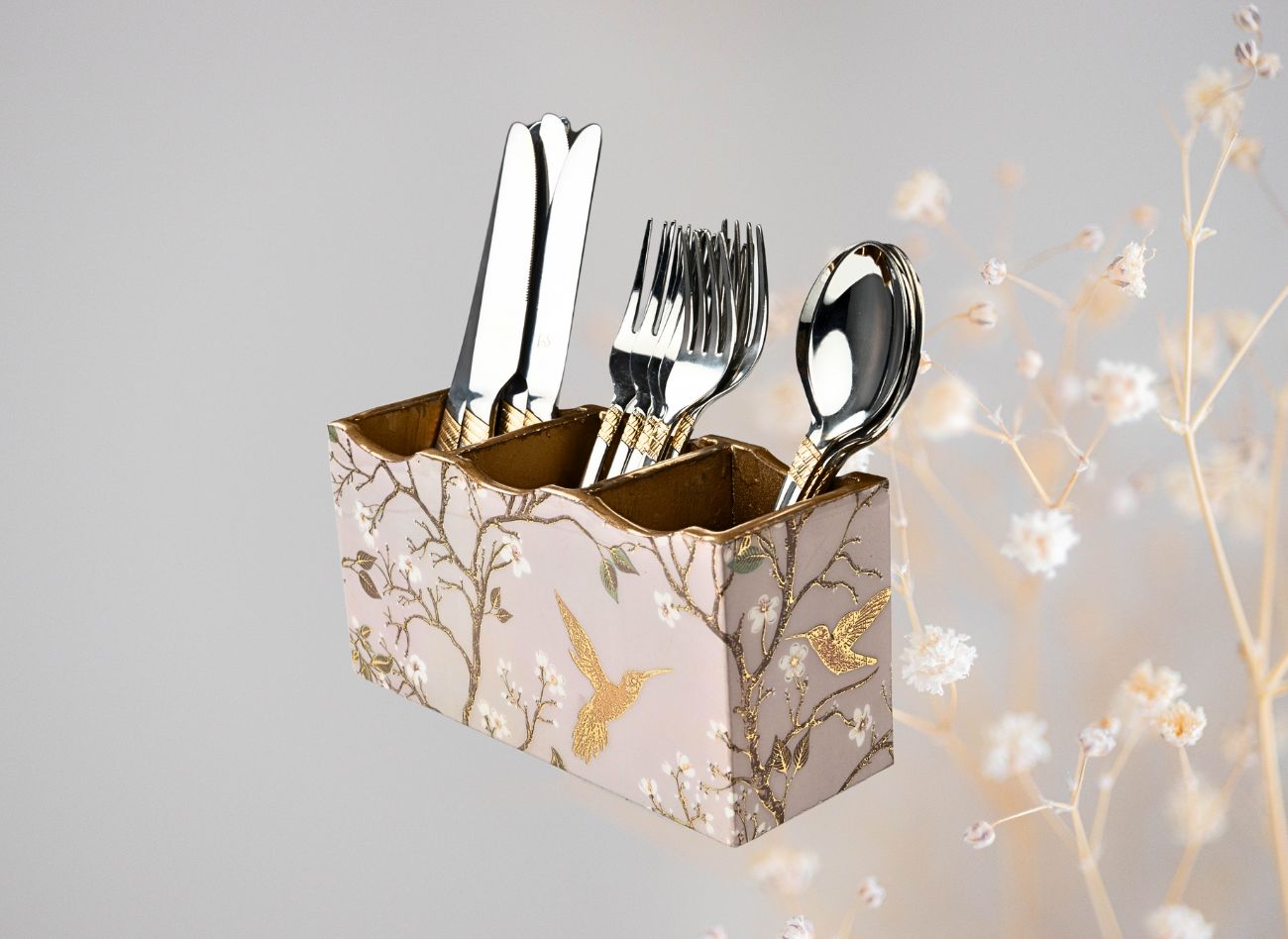 Embrace a soft, feminine charm with the Pink Wing Collection from Daily Talk – a beautiful ensemble of handcrafted utility décor that brings art into your everyday life. Inspired by delicate floral vines and graceful winged patterns in shades of pink and gold, this collection is perfect for those who love elegance with purpose. Crafted from durable engineered wood and finished with detailed foil art under a protective epoxy coating, each piece – from trays to coasters to holders – is made to be as functional as it is beautiful. Whether you’re serving guests or organising your table, Pink Wing adds sophistication to every touchpoint of your home.